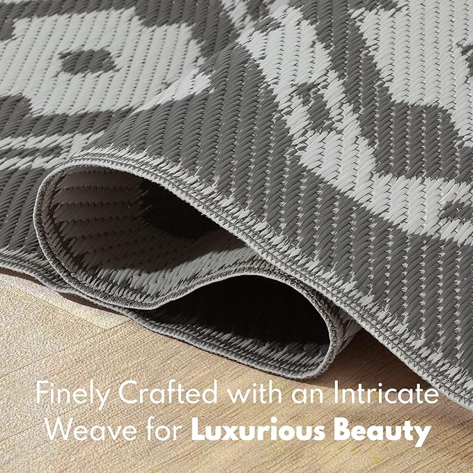 - REVERSIBLE MODERN DESIGN: Our outdoor rug features a reversible design with double-sided patterns, seamlessly blending style and comfort. Available in a variety of beautiful colors and patterns, this outdoor plastic straw rug invites you to create a harmonious outdoor space that reflects your personal taste. The soft texture offers a luxurious walking experience, combining aesthetic appeal with inviting comfort in every step