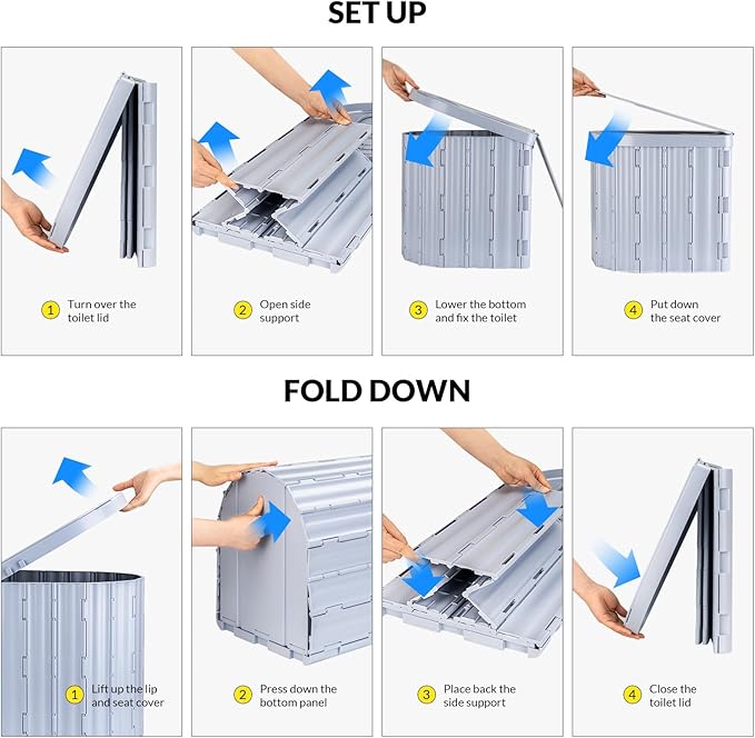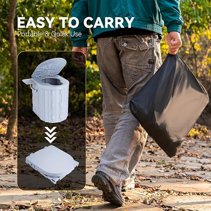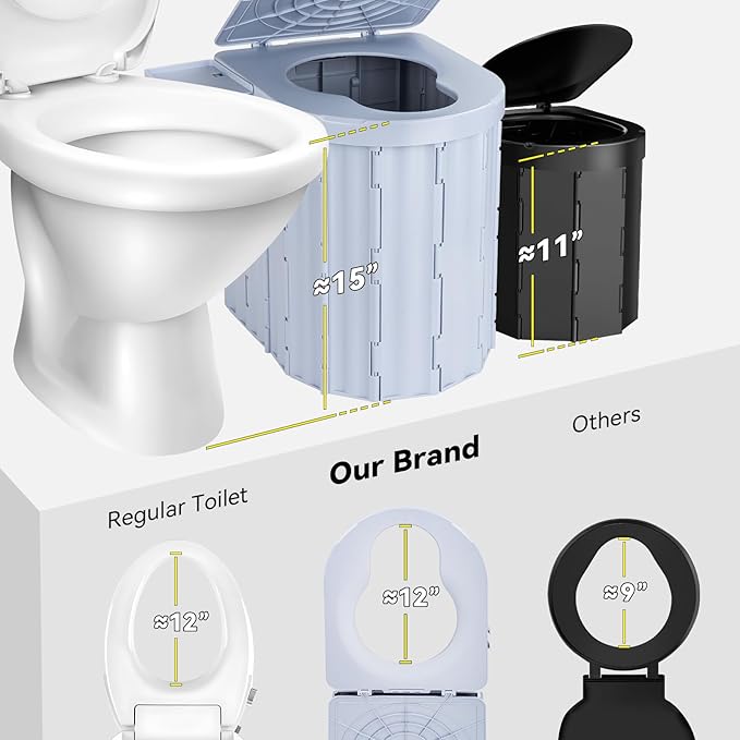 Portable Toilet, Upgraded 15'' Camping Toilet for Adults with Lid, Folding Toilet with Removable Paper Holder, Travel Portable Potty for Camping, Hiking, Roadtrip, Tent, Truck Drivers