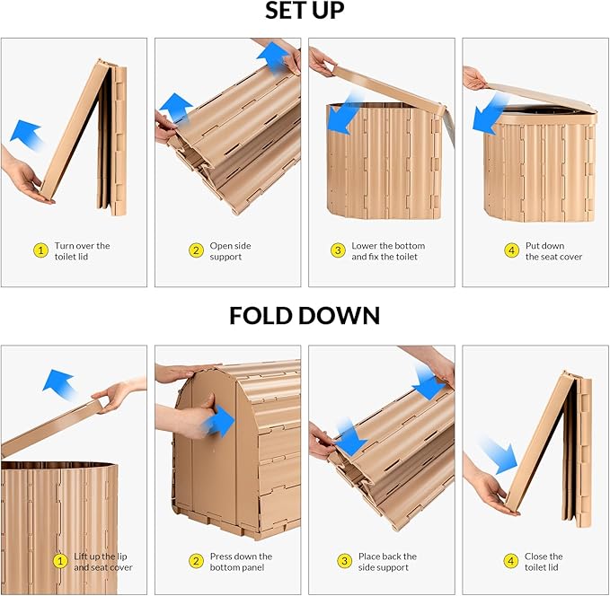 Portable Toilet, Upgraded 15'' Camping Toilet for Adults with Lid, Folding Toilet with Removable Paper Holder, Travel Portable Potty for Camping, Hiking, Roadtrip, Tent, Truck Drivers