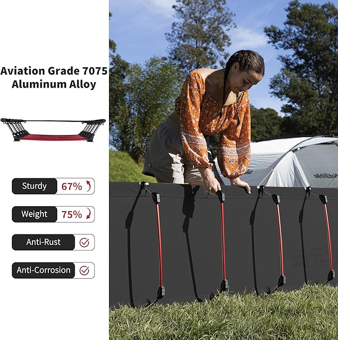 - 【60s Set Up & Take Down】Simply insert 2 long support poles into the 2 sleeves of the cot sheet and lock the 5 support legs. The shock-cord tube will make the setting up and taking down much simple. Within 60 seconds you can set your camp cot up and enjoy the comfort