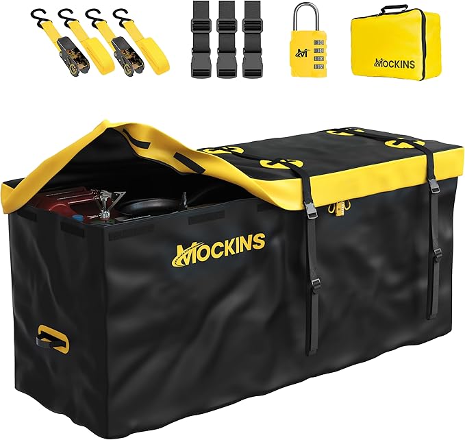 - Customer Comes First: Mockins is committed to our customers and the quality of our waterproof cargo bag for truck bed . That’s why we offer a 10-year limited warranty on our heavy-duty trailer hitch cargo carrier bag bundle, which includes durable straps, a combination lock, a carry bag, & fully waterproof zippers. If you have any issues or concerns with our car luggage bag , please feel free to contact us. Transport your belongings with confidence & style using the Mockins Cargo Carrier Bag !