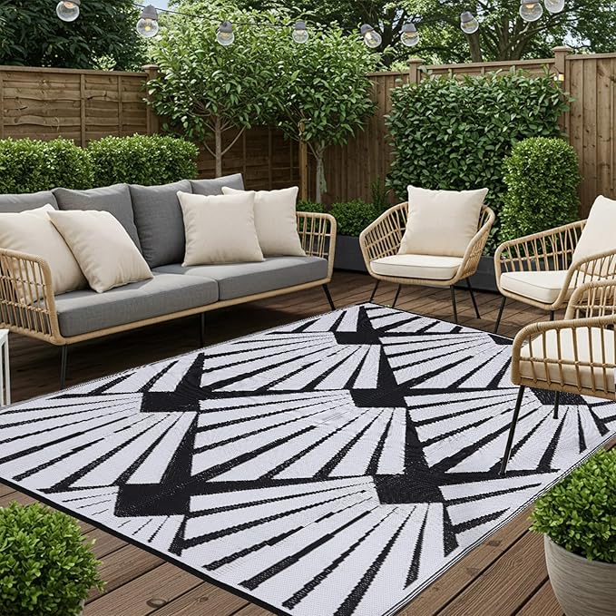 - ใ๐ฅ๐ฒ๐๐ฒ๐ฟ๐๐ถ๐ฏ๐น๐ฒ ๐๐ฒ๐ผ๐บ๐ฒ๐๐ฟ๐ถ๐ฐ ๐๐ฎ๐บ๐ฝ๐ถ๐ป๐ด ๐ฅ๐๐ด โ ๐ฆ๐๐๐น๐ฒ ๐ ๐ฒ๐ฒ๐๐ ๐๐๐ป๐ฐ๐๐ถ๐ผ๐ปใ Made from UV-resistant polypropylene, this versatile outdoor rug features a modern geometric design on both sides. Flip to the dark side to hide stains at campsites or tailgates, or switch to the light side for a clean, stylish look on patios or decksโideal for RV trips, picnics, and outdoor gatherings.