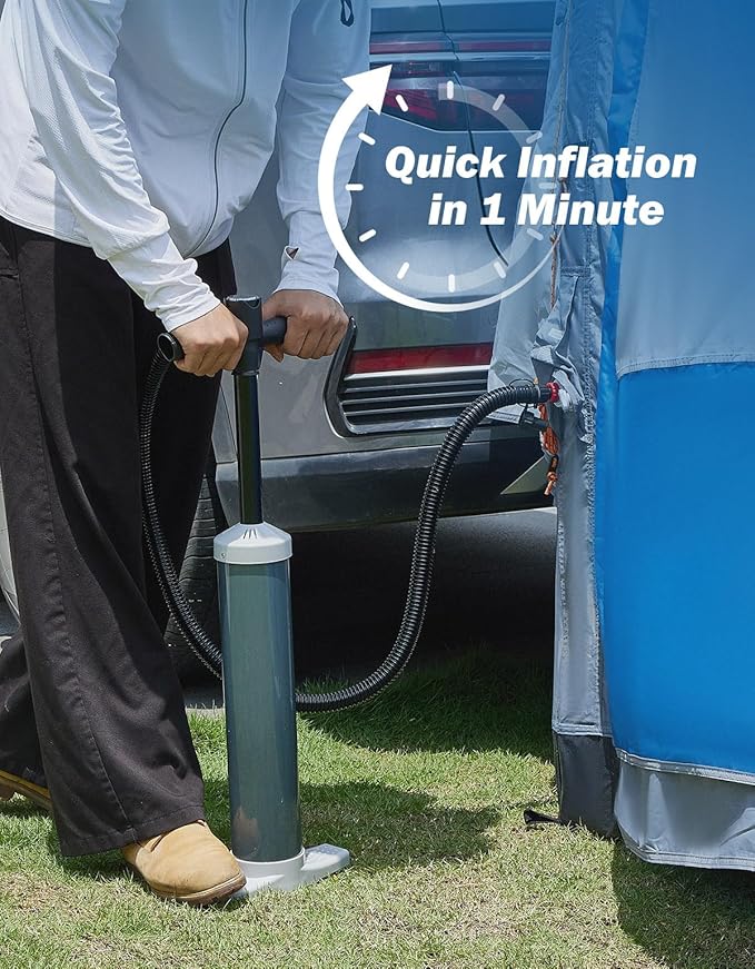 - 60-Seconds Setup & 30% More Space: We know your outdoor time is precious. Joytutus suv tent air-inflation system sets up your tent in just 60 seconds (manual inflation available) with a sturdy backbone—no poles needed. Enjoy 30% more interior space that comfortably fits 4-6 people, so you can truly stretch out