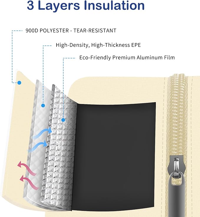 - SUPERIOR MATERIAL: Reusable lunch bag with thickened waterproof aluminum foil and three layers of insulation. Provides excellent thermal performance, durability, and easy cleaning. Keeps food cool or warm for 3-4 hours. Leakproof, lightweight, and features a soft handle for convenience