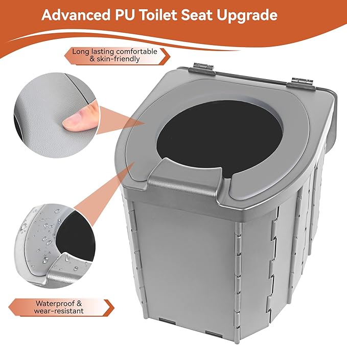 - 【Robust yet Lightweight Build】Weighing merely 4.73lbs, our camping toilet combines featherweight portability with heavy-duty ABS plastic construction, resilient enough to support 400-450lbs. Engineered for steadfast stability, it caters to users of all ages, delivering unwavering reliability in camping, hiking, or travel scenarios, ensuring a worry-free experience every time.