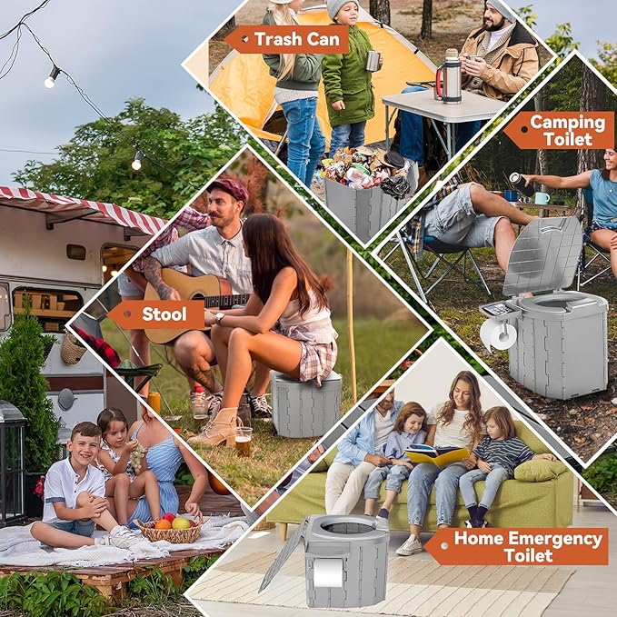 - 【VERSATILE UTILITY】Our Foldable Toilet boasting a convertible design, this multi-functional unit effortlessly transitions between roles as a camping toilet, foldable stool, storage container, side table, or even a temporary wastebasket. This is an essential item to have not only for emergency preparedness, but for camping, boating, long car rides, road trips, hiking, backcountry, and all other outdoor adventures.This Camping Toilet is perfect for family trips and home emergency preparedness providing ease of use for everyone.