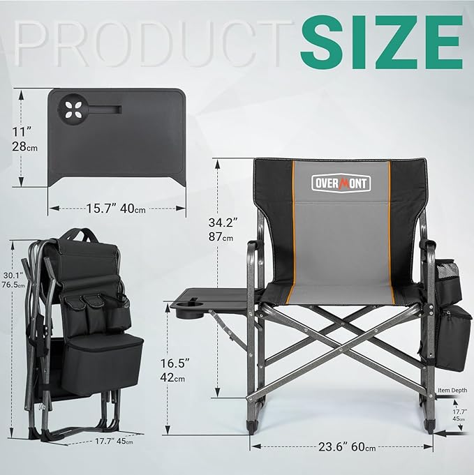 - 【400 lbs Heavy Duty Capacity & 600D Oxford Fabric】Overmont XL directors chair is sturdy and durable, expanding to 23.6 x 17.7 x 34.2 inches and supporting up to 400 lbs. Its robust frame ensures stability and comfort, while featuring 600D Oxford fabric, perfect for relaxing in any outdoor setting.