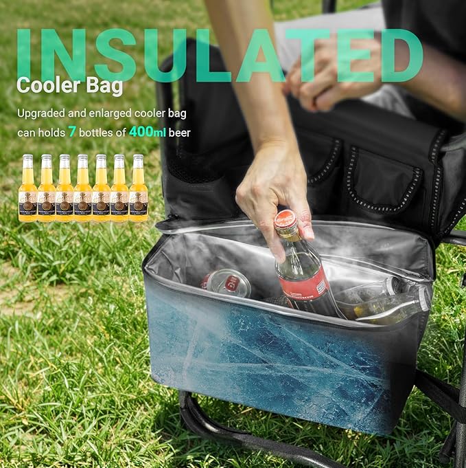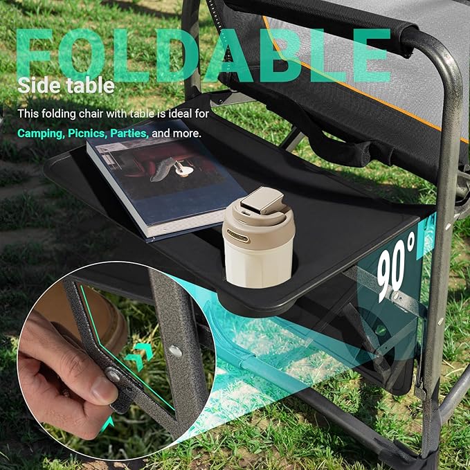 Overmont Oversized Lightweight Camping Chair - Comfortable Heavy Duty Foldable Directors Chairs with Side Table & Cooler Bag for Outside Camp Beach Picnic Lawn and Fishing Supports 400lbs