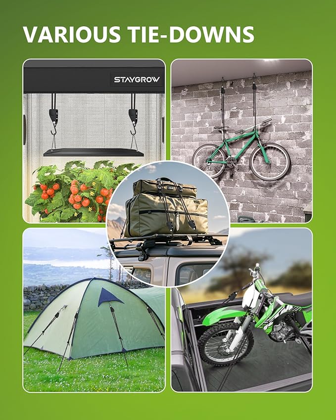 - Multi-Purpose: No matter what the truck, garage, kayak, or other use, If it needs to be tied down or hoisted, the cargo straps help you tie it down quickly and easily