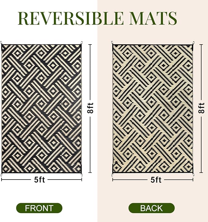OPPODREAM Outdoor Rug 5x8 Ft, Waterproof Outdoor Plastic Straw Rug for Patio, Reversible Out Door Carpet for Camping, Deck, Rv, 5 x 8 Area Carpet for Balcony, Porch, Backyard, Black and Beige