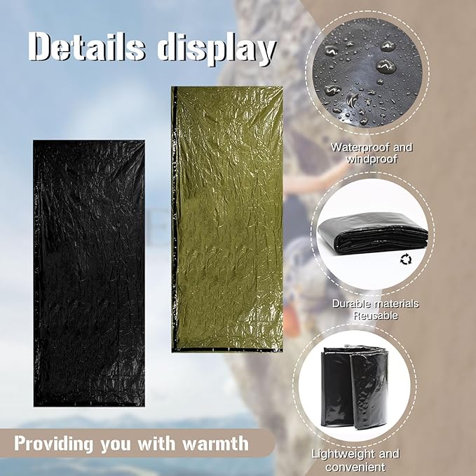 - Wide Application: The whistle on each package can be used in emergency situations, and the emergency kit is perfect for camping, hiking, and resisting outdoor cold. It can not only be used for sleep, but also as a tool for emergency shelters and camping kits