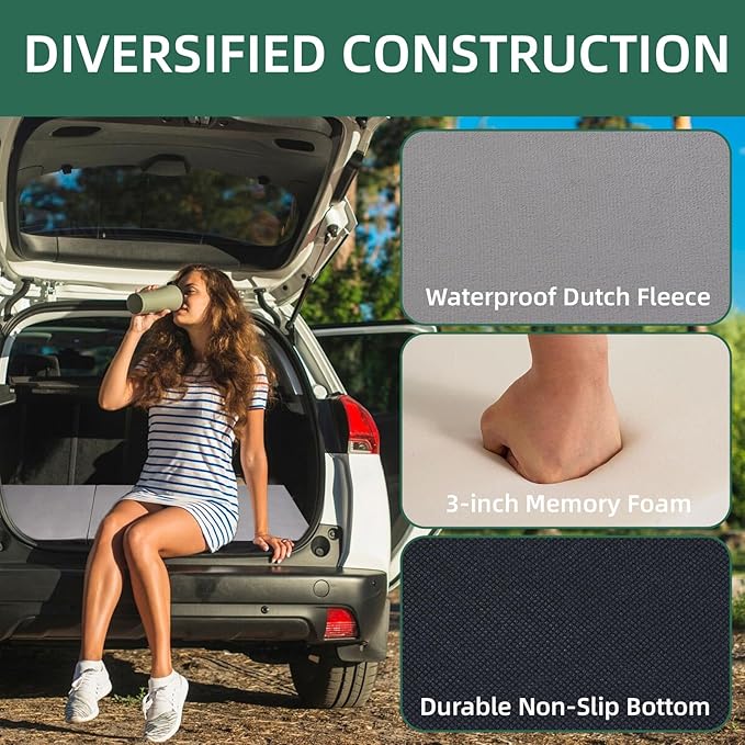 Memory Foam Camping Mattress, Car Camping Bed Mattress with Dust Cover, Portable Waterproof Camping Pad Mat, for Outdoor Sleeping, Foldable, for Travel Truck Bed Tent