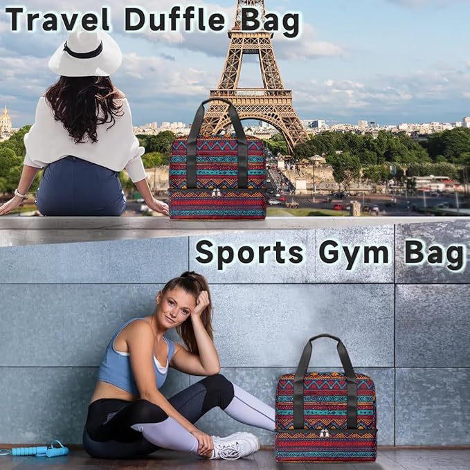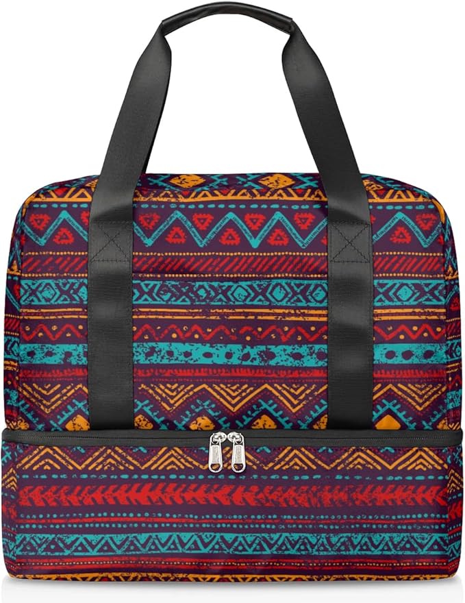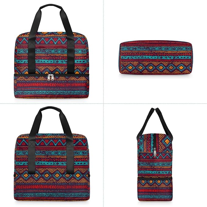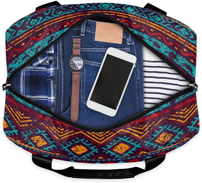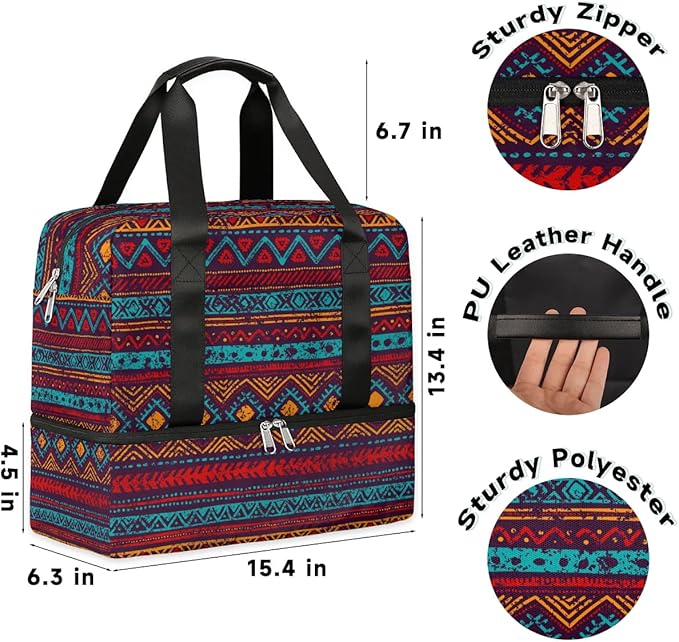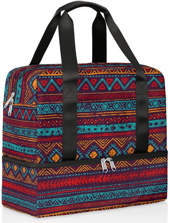 Sports Gym Bag Western Ethnic Aztec Travel Duffel Bag Waterproof Lightweight Swim Bag Travel Tote Luggage Weekender Overnight Handbag Workout Bag with Shoes Compartment for Women Men