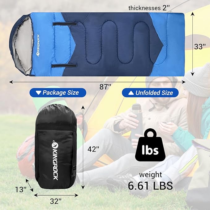 - Spacious & Comfortable: With dimensions of 33" x 87", this sleep bag comfortably fits a 6ft adult. The skin-friendly polyester fabric is soft, breathable, and designed for a comfortable night's sleep, whether you're indoors or enjoying the great outdoors, ideal for camping, hiking, and traveling. Fully open the warm sleeping bag and it transforms into a blanket or quilt, making it versatile for various camping needs, or as an emergency blanket for your vehicle