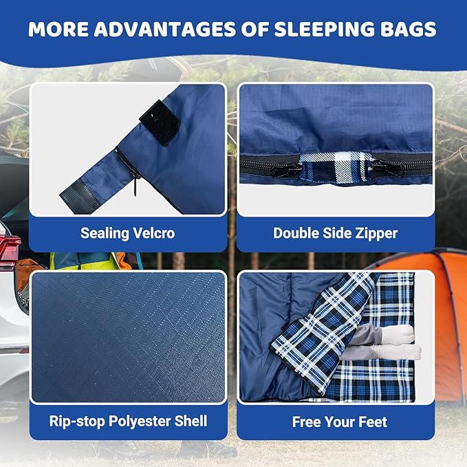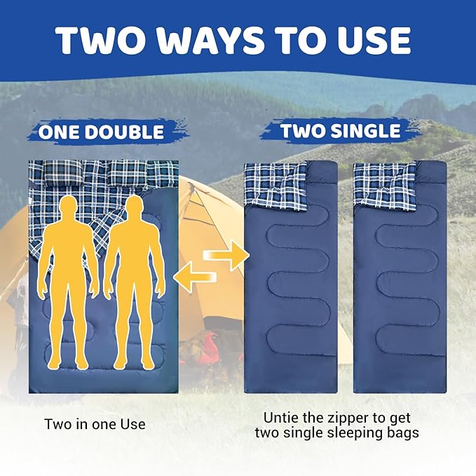- Practical Uses: Our sleeping bags use a double zipper slider design, ideal for sliding from any position, whether you are entering or leaving, or adjusting for ventilation while you are inside. The drawstring tightens the sleeping bag cap for added warmth, keeping your head snug and protected from the cold, and the pinch-proof zipper prevents the fabric from getting caught. The detach zipper at the bottom provides the ability to open up the ventilation and keep your feet cool and comfortable