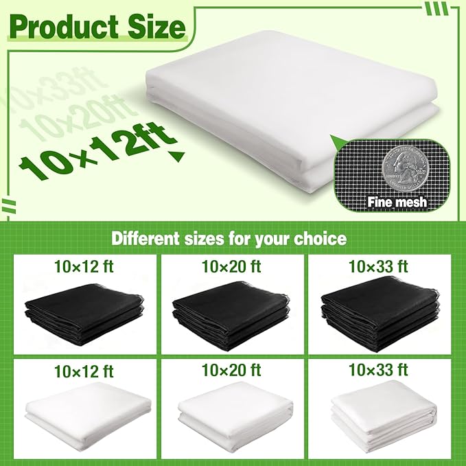 - Ultra-fine Garden Screen: The dense mesh design makes it ideal for summer use in beds, balconies, porch, window, or patios. It's also perfect for garden application, safeguarding your plants from birds and other animals.