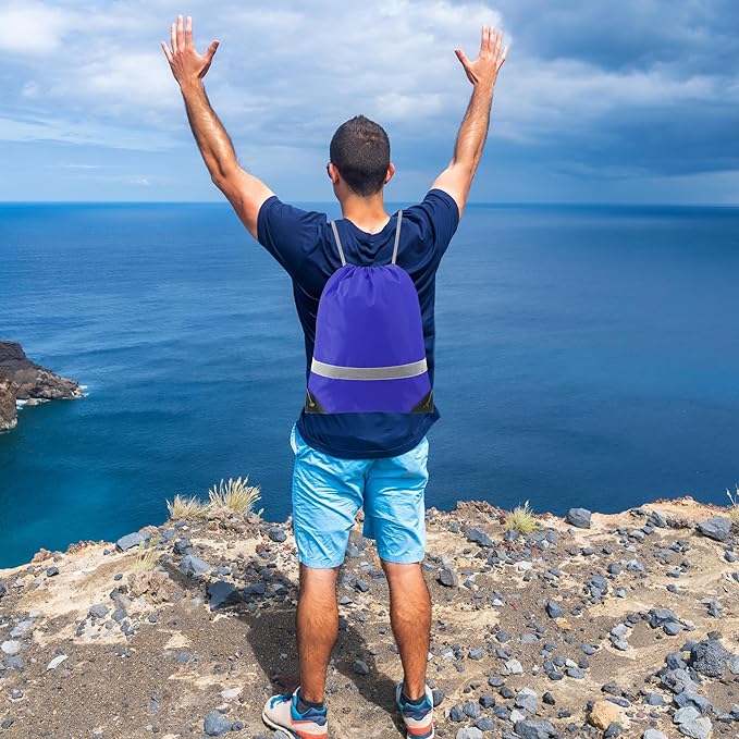 - 【STURDY & EXTRA REFLECTIVE STRIP】-- The bags are very sturdy and withstands daily wear and tear. Double stitches for all seams, making the bag is not easy to fall off and can last long. Our drawstring bags have PU leather reinforced corners, durable drawstring cords, and metal eyelets. These designs ensure that our drawstring bag is more durable. Also, the extra reflective strip can enhance the high visibility to ensure your safety while outdoor in the dark or dusk.