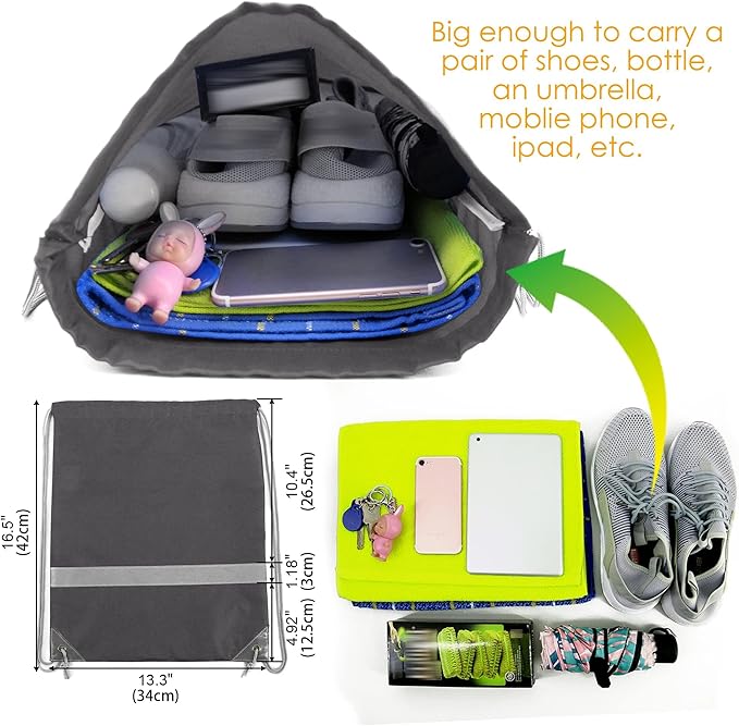 - 【LARGE CAPACITY & LIGHTWEIGHT】-- The drawstring backpack measures 16.5" x 13.4" and it is large enough to carry a pair of shoes, a bottle, an umbrella, lunch or clothes. These drawstring bags are made of high-density 210D polyester fabric. Lightweight and foldable, it is a good choice for home or travel. Provide you with a lot of convenience.