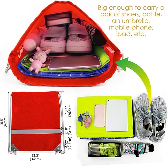 • 【STURDY & EXTRA REFLECTIVE STRIP】-- The bags are very sturdy and withstands daily wear and tear. Double stitches for all seams, making the bag is not easy to fall off and can last long. Our drawstring bags have PU leather reinforced corners, durable drawstring cords, and metal eyelets. These designs ensure that our drawstring bag is more durable. Also, the extra reflective strip can enhance the high visibility to ensure your safety while outdoor in the dark or dusk.