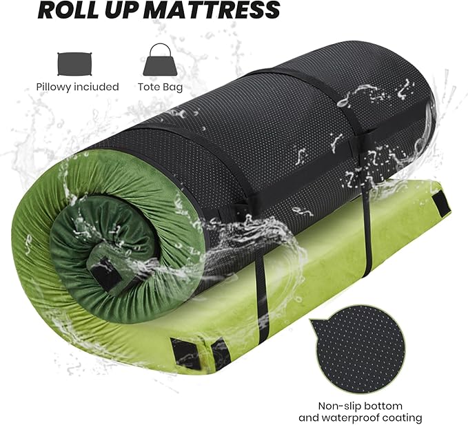 • 【OPTIMAL SUPPORT】: In addition to its softness, the roll up mattress also offers excellent support. Whether you sleep on your back, side, or stomach, the sleeping pad can precisely adapt to the curves of your body. By evenly distributing your weight, it reduces pressure on the joints and spine, promotes correct posture, and prevents discomfort during sleep.