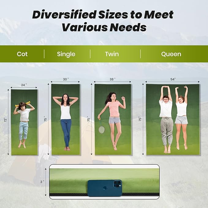 • 【ULTRA SOFT】: The memory foam camping mattress is well made and offers an unparalleled soft touch experience. When you lie down, the camping mattress gently conforms to your body, wrapping you in a cloud - like embrace. This softness helps relieve pressure on your body, making it ideal for a restful sleep.