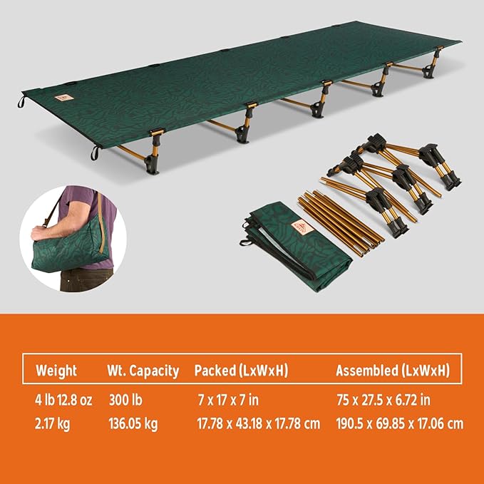 - QUICK AND EASY TO ASSEMBLE: No need to labor over lugging this thing around, the lowdown cot folds neatly into the included compact carrying bag and can be tossed over the shoulder for simple transport at less than 5 lbs total weight.