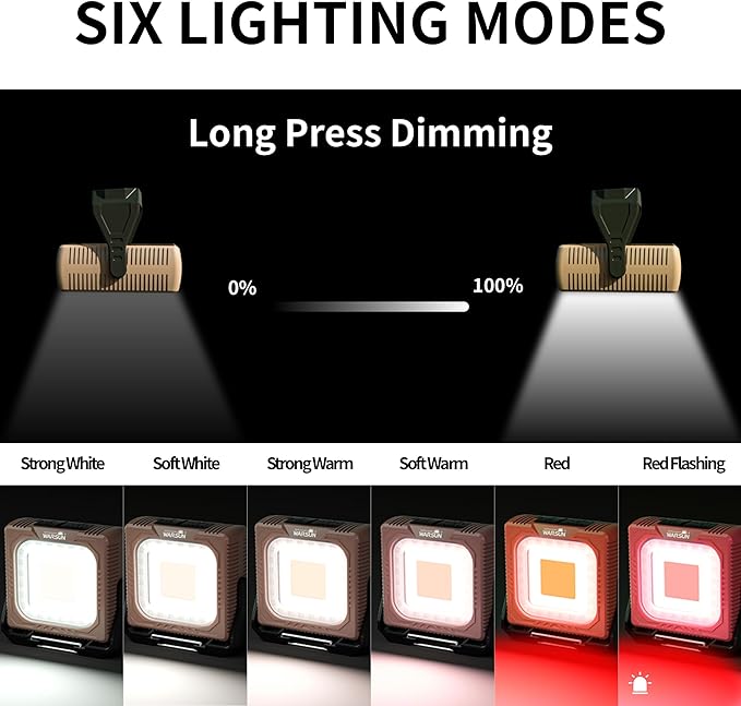 WARSUN 1000 Lumens Rechargeable Work Light – Portable LED Camping Lantern with Tripod Mount, Type-C Charging, Magnetic Base, Hanging Hook, Multi Lighting Modes, for Outdoor, Hiking, Camping