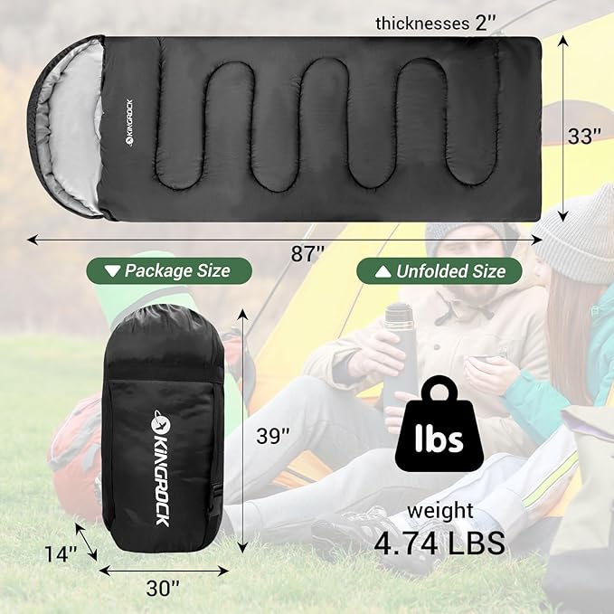 - Lightweight & Easy to Carry: Camping sleeping bag weighing only 6.6 lbs, this sleeping bag is designed for portability. Compact and easy to fold, it stores neatly in the provided carry bag, making it the perfect companion for your next adventure! The compact compressed carry sack measures just 30x 39CM, saving space to fits your backpack while still providing plenty of room for comfort