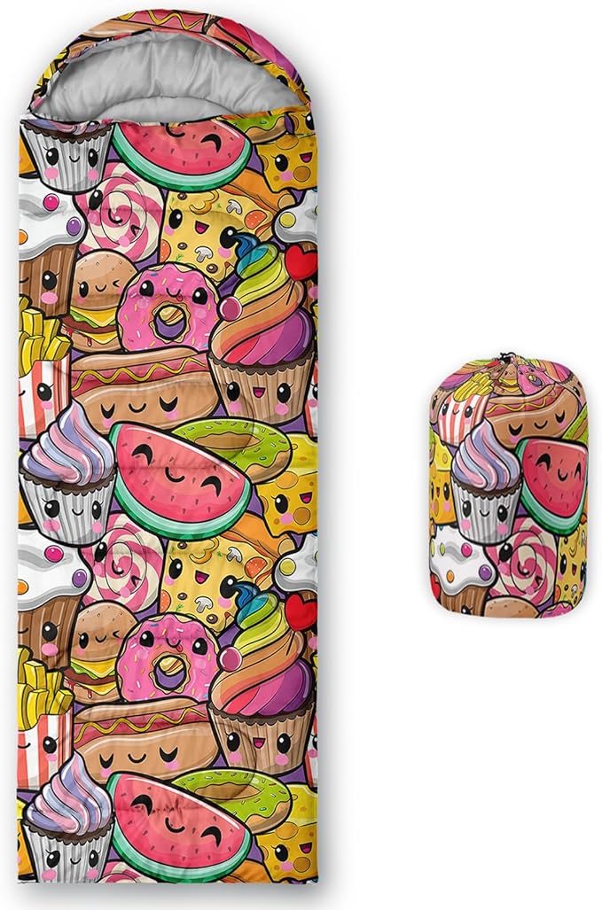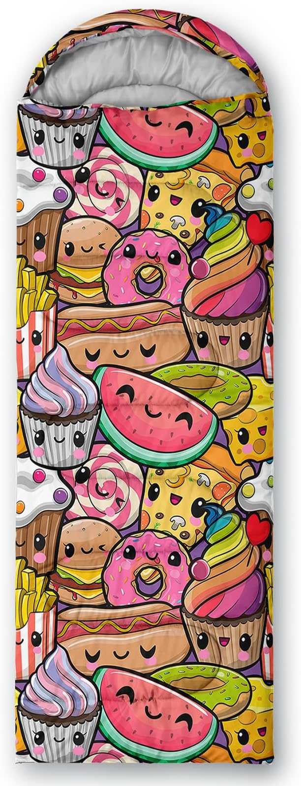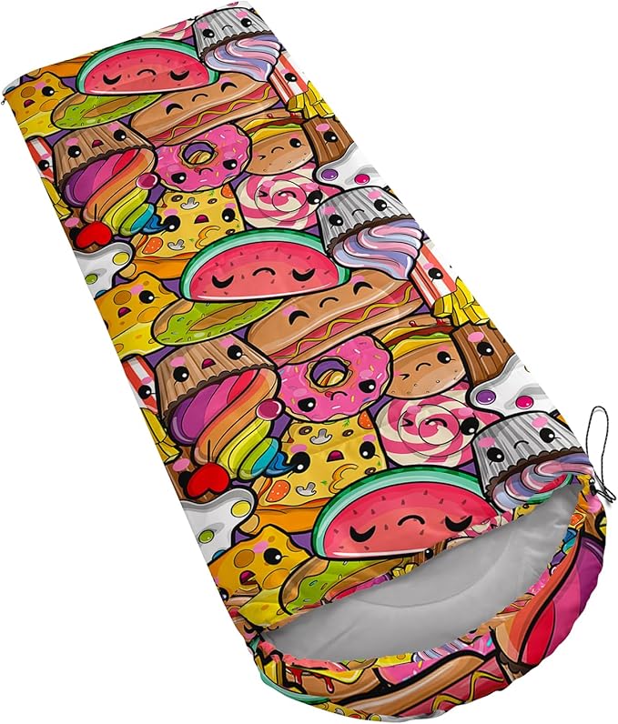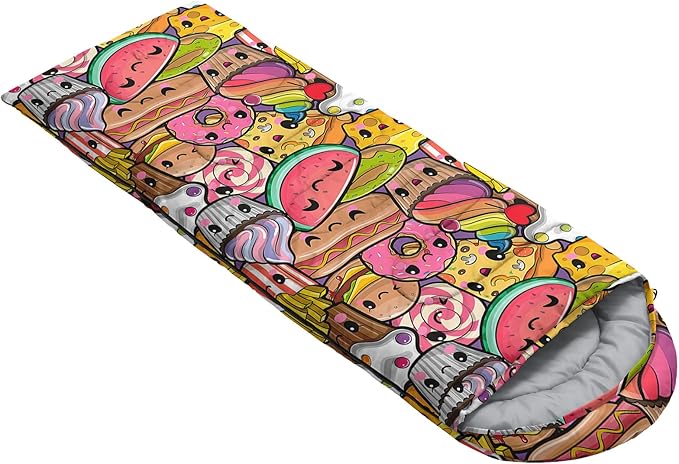 - Unique Cartoon Design:This Cartoon pattern sleeping bag is made of 3D digital printing with vibrant colors and patterns,size: 31W x 90L inches,temperature range: 32℉-77℉ (0℃-25℃),it also also have a weather resistant waterproof design to keep you warm and prevent you from any dampness,can be used in 3 seasons
