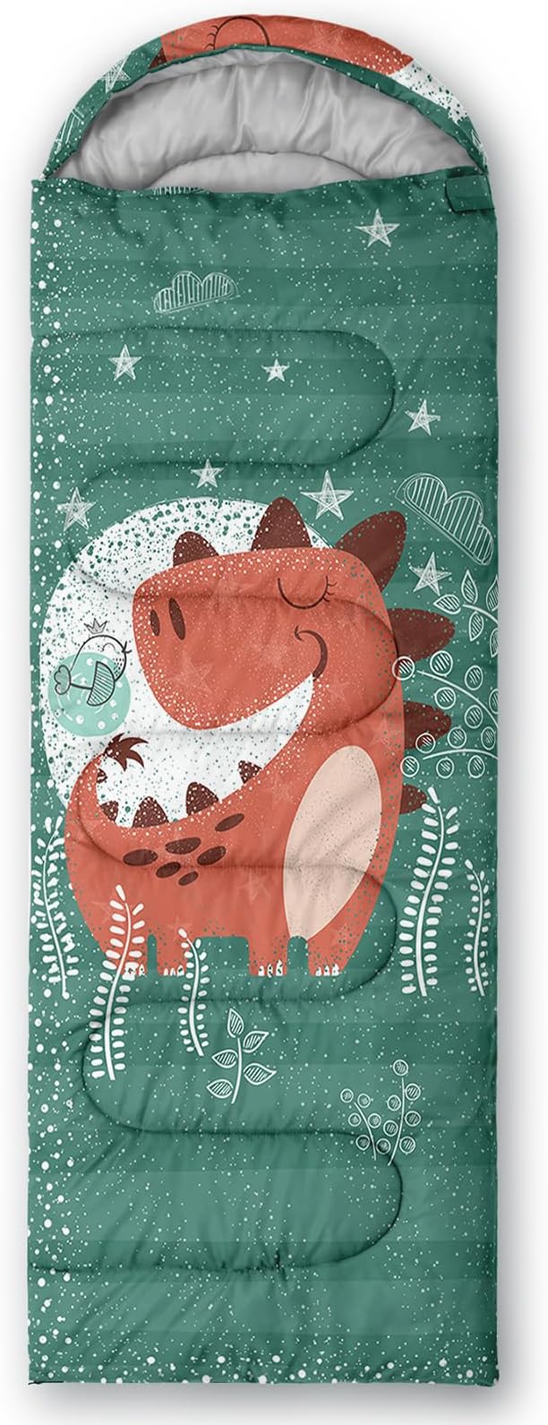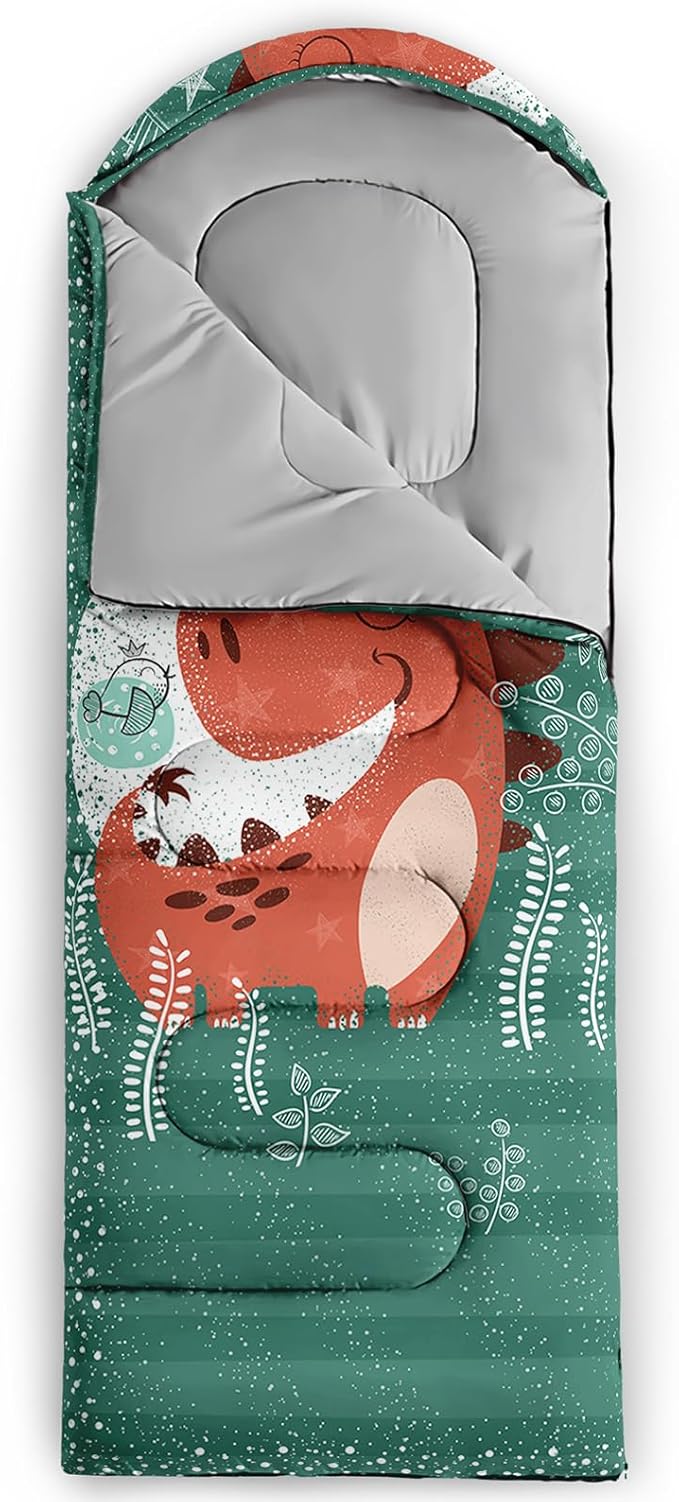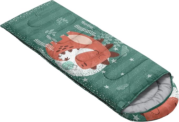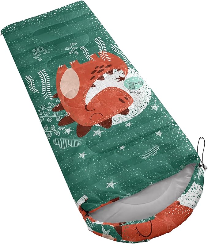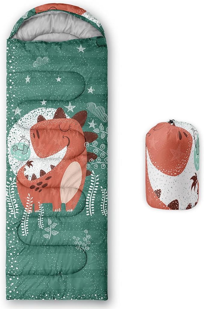 - Unique Dinosaur Design:This Dinosaur pattern sleeping bag is made of 3D digital printing with vibrant colors and patterns,size: 31W x 90L inches,temperature range: 32℉-77℉ (0℃-25℃),it also also have a weather resistant waterproof design to keep you warm and prevent you from any dampness,can be used in 3 seasons