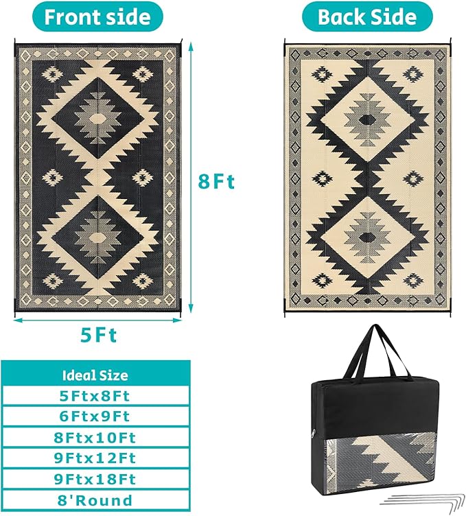 - Versatile Outdoor Carpet: The indoor outdoor plastic woven rugs have multiple choice in different colors(4'x6',5'x8',6'x9',8'x10',9'x12',9'x18',8'round), is ideal for a variety of indoor outdoor activities,like patio mat, deck rug, garden rug, beach mat, picnic mat, BBQ party mat, rv camping rug,pool rug,outdoor doormat,garage rug,front door mat,allowing you to have plenty of imaginable space for more fun.