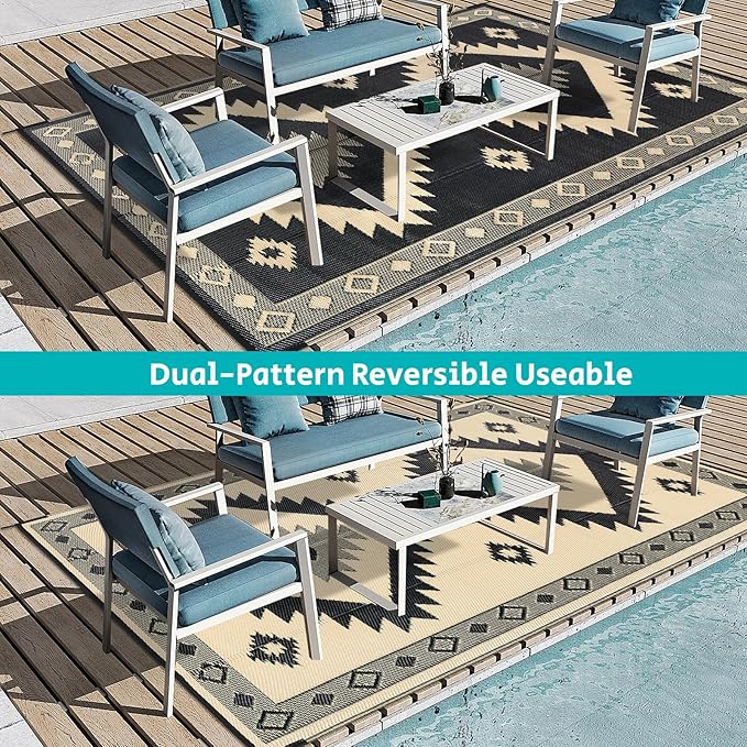 - Easy Maintenance Waterproof Patio Rugs : Compared with other camper rugs, this camping outdoor rug is simply wipe or hose off; For a deep clean, you can use a wet soft cloth with mild soap and rinse with water.