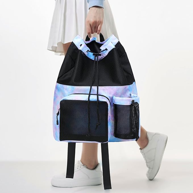 - [Suitable Occasions] - The sports mesh swim bag is unisex and suitable for various activities, including swimming, walking, day trips, hiking, camping, sports practices, vacation, beach travel, yoga, running, and shopping, etc. It's a fabulous gift idea for men, women.