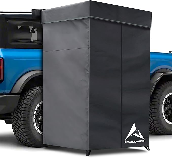 - 30-SECOND QUICK SETUP - With a quick 30-second setup, the awning shower tent can be effortlessly unfolding and folding for maximum convenience. It also includes attached guy ropes to secure the shower tent, ensuring stable use even on windy days. It compatible with various vehicle heights, including 4x4s and camper trailers.
