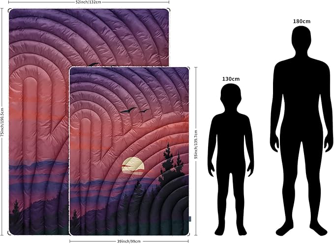 - Design and Use:The camping blanket features a stylish design with a pattern that evokes the beauty of nature. Its puffy and soft texture adds to its aesthetic appeal.Perfect for camping, picnics, and outdoor activities, this multi-functional blanket is also suitable as a stadium blanket, providing warmth and comfort in cold weather conditions.