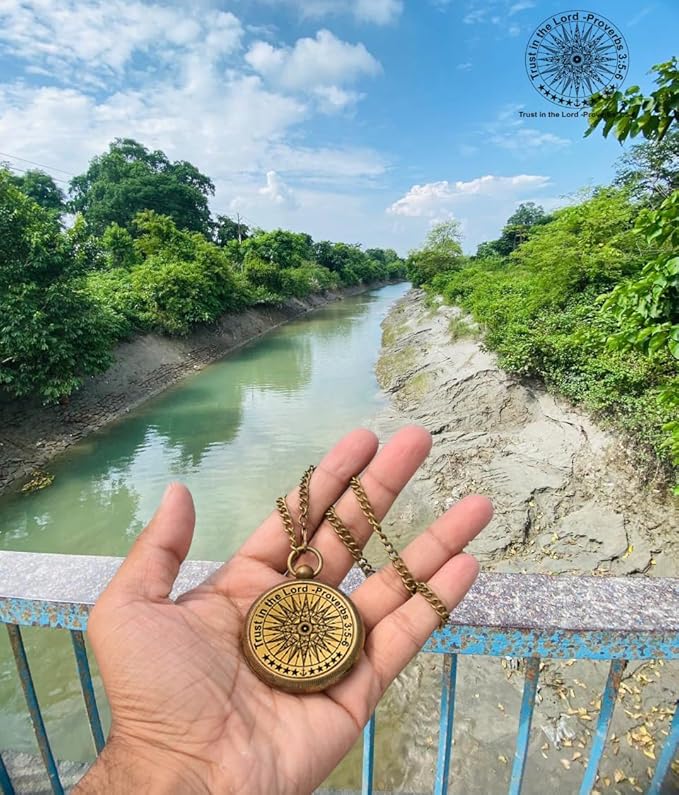 - Solid Brass Compass Antiquated Brass Finish With Trust in The Lord with All Your Heart -Proverbs 3: 5-6 Quote Engraved Compass with Wooden Box
