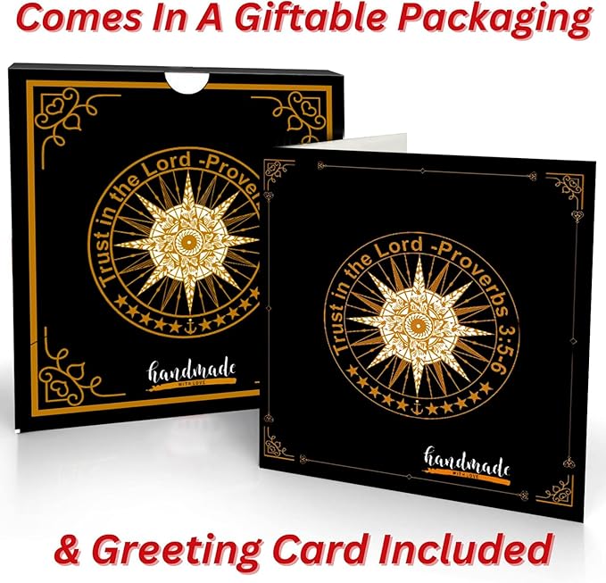 Trust in The Lord with All Your Heart -Proverbs 3: 5-6 Quote Engraved Compass with Wooden Box, Birthday, Baptism, Communion, Christmas, Graduation Day Gifts 2025 Compass for Women Mens Boy Girls