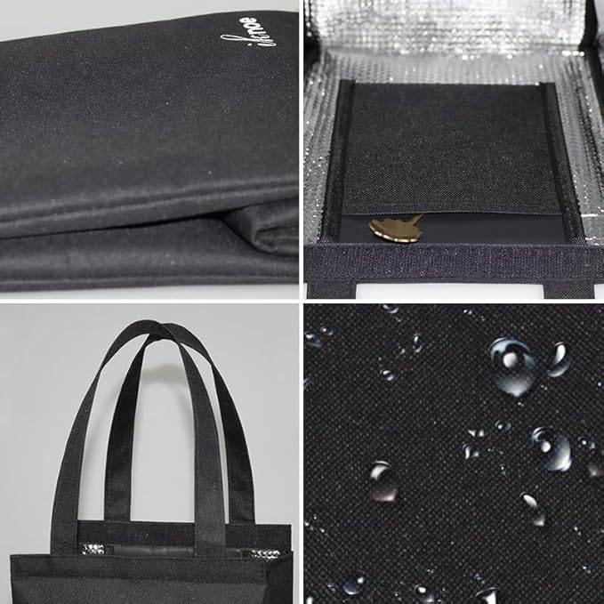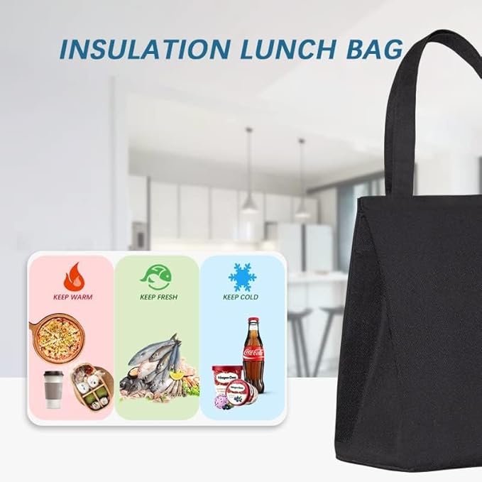 - INSULATED & FOOD-GRADE MATERIAL: The reusable lunch tote bags are constituted with oxford cloth and aluminum foil, which is known for its excellent air isolation and temperature retaining, keeping your food cold/warm for hours. Tight stitching without tearing, sturdy. Can Keeps your food warm or cold for hours well.