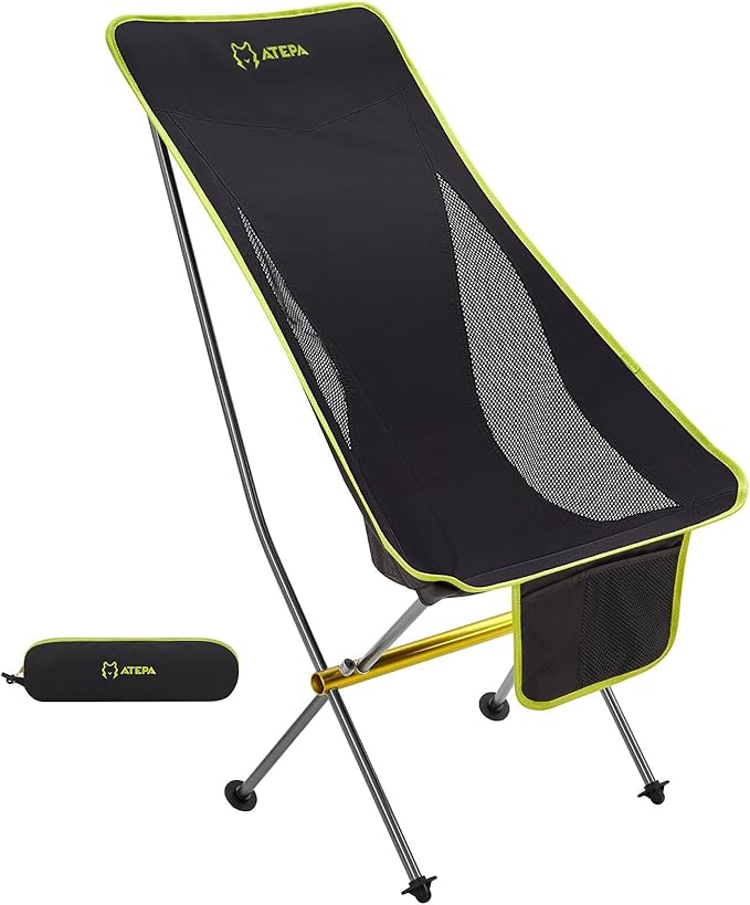 ATEPA Backpacking Chair, Ultralight Folding Portable Small Camping Chairs for Adults Compact Foldable Beach Seat with Anti-Sinking Feet & Aluminum Frame for Outdoor Hiking Travel Fishing