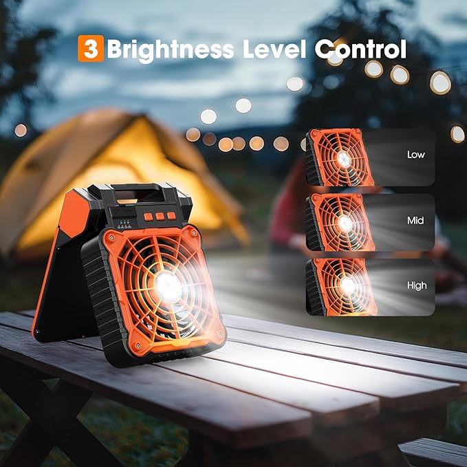 - 🌞 【Versatile LED Camping Light】- Light up your nights! The solar panel fan features a built-in LED light with 3 adjustable brightness levels. Use the low setting for a soft glow, the medium setting for reading, or the high setting to illuminate your entire tent. The convenient hook allows you to hang it anywhere, saving space and adding functionality.