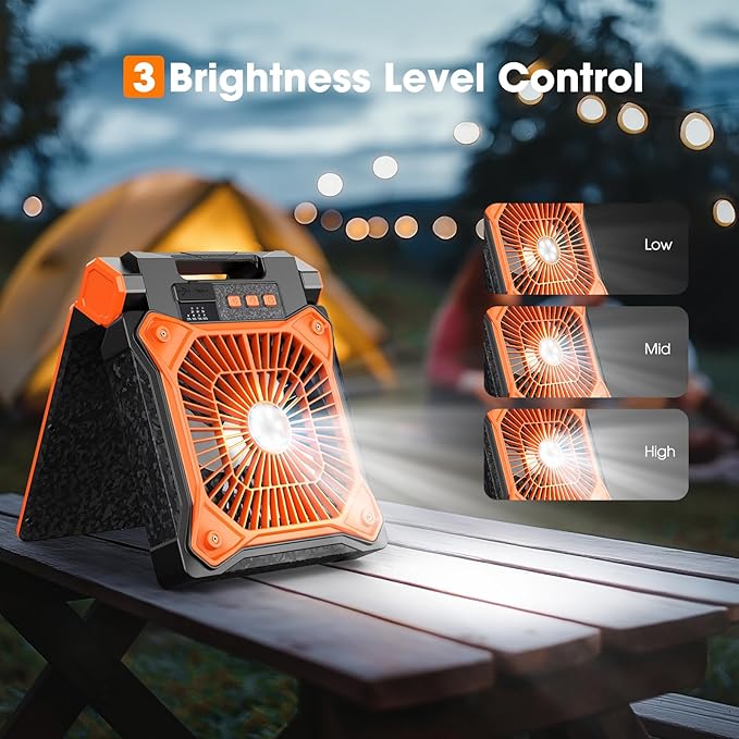 - 🌞 【Versatile LED Camping Light】- Light up your nights! The solar panel fan features a built-in LED light with 3 adjustable brightness levels. Use the low setting for a soft glow, the medium setting for reading, or the high setting to illuminate your entire tent. The convenient hook allows you to hang it anywhere, saving space and adding functionality.