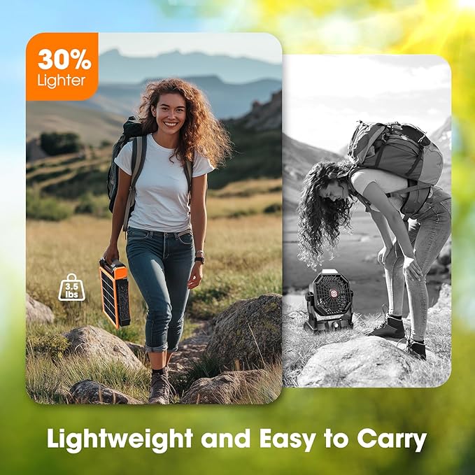 - 🌞 【Rugged & Portable】- Built to withstand the elements, the rechargeable fan’s durable ABS housing is shockproof and anti-drop, making it ideal for outdoor use. Its compact and lightweight design fits easily into your backpack, so you can take it camping, hiking, fishing, or even to the beach.