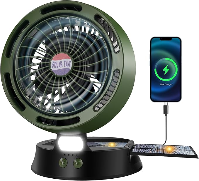 - β πππ πππππ π ππ ππππ ππππππππ πππππ ππππππππ πππππππ - Different from other low-quality products on the market, DUKUSEEK solar camping fan is built-in a 10400mAh rechargeable battery, which can work continuously for 8-36 hours, bringing you more lasting coolness. The personal battery powered fan supports charging and using at the same time. Great design for outdoor travel, gazebo, camping trip, power outage, hurricane ect.