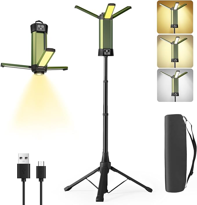 - Compact Design with Storage Convenience: This LED work light with stand shrinks to just 33 inches and measures just 25 inches in length with the head removed, comes with a storage bag for easy transportation. Ideal for traveling, patio parties, or as a reliable camping light with stand for your adventures.