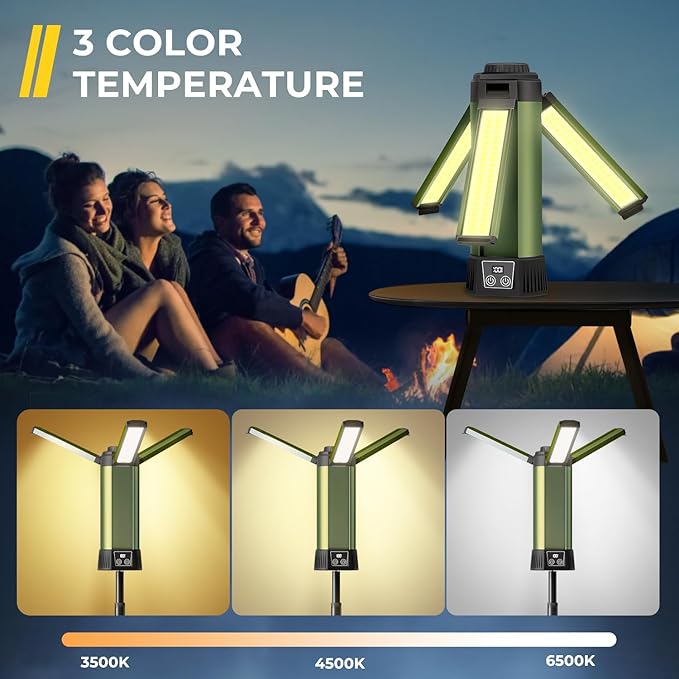 - Powerful LED Performance: Equipped with XHP50 LED beads and 3 COB light source boards, this battery operated work lights with stand delivers up to 500-2000 lumens of brightness. Choose from multiple modes for max versatility in lighting conditions—ideal for outdoor activities and emergencies.