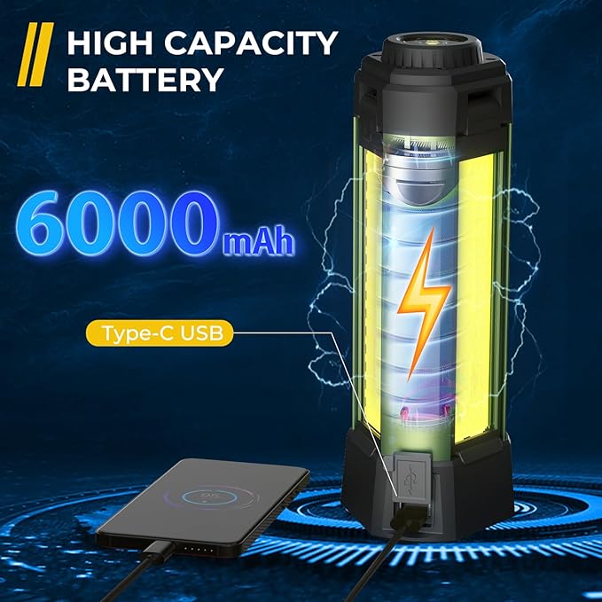 - Rechargeable Work Light with Stand: This rechargeable LED work light with stand features a built-in 6000 mAh battery, providing an impressive 5-50 hours of illumination for all your outdoor and indoor tasks. Perfect for camping, construction, and workshops.