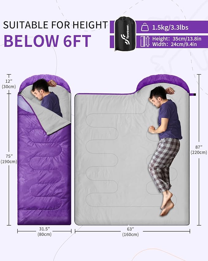 Sportneer Sleeping Bags for Adults, Warm & Cold Weather Sleeping Bag for Adults Kids Boys Girls - Lightweight Compact Camping Gear Equipment, Traveling, Backpacking, Hiking