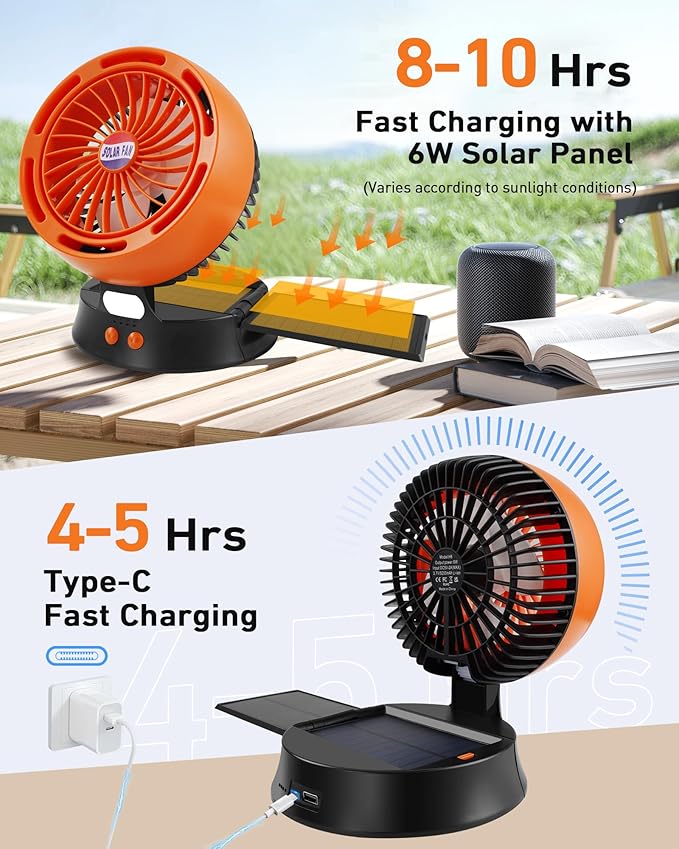 - β ππππππππ πππππππ π ππ ππππ ππππππππππ πππππ πππππ - DUKUSEEK latest solar power fan combines and improves the drawbacks of both integrated and split-type outdoor solar fans. It is foldable and easy to be carried. The solar panel is made of monocrystalline silicon and utilizes sunlight to generate electricity. Fully charge this solar powered outdoor fan needs just 8-10 hours under well-lit conditions and 4-5 hours with USB type-C fast charging.