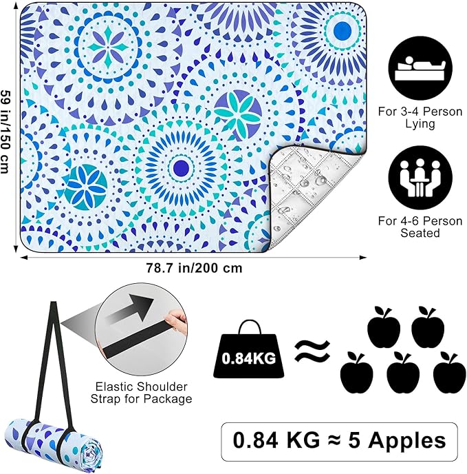 - Suitable for Various Ground: The bottom layer of the beach blanket is made from waterproof polyester film, effectively insulating against moisture, sand, grass and dirt, this ensures that you stay dry and clean, no matter where you lay your blanket, ideal camping essentials for beach outings, park picnics, and camping gear, this feature keeps your blanket pristine and ready for any outdoor setting