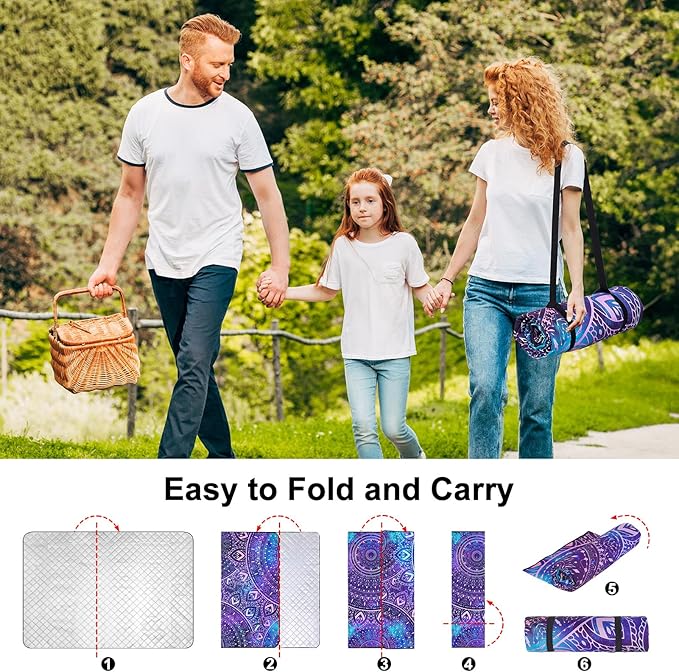 - Easy to Pack: Once your outdoor fun is over, you can easily pack up the picnic blanket using the included carrying strap, this practical feature makes it simple to fold, secure, and carry the outdoor blanket, allowing for easy transport to and from your favorite outdoor locations, no more struggling with bulky, awkward blankets